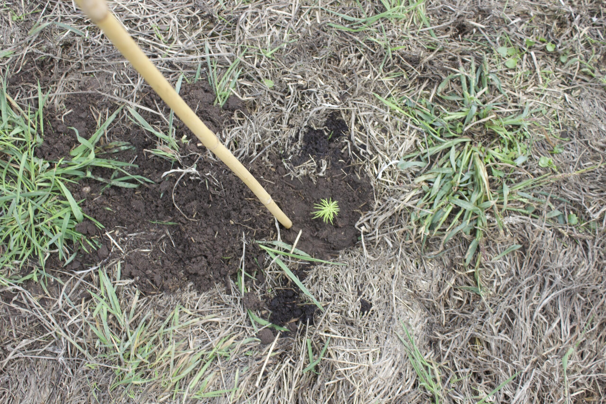 We plantten tientallen boompjes aan de kop van de startbaan. We hebben hun hulp nodig om alle CO2 die strijdkrachten uitstoten op te vangen en naarmate de boompjes hoger groeien, wordt het moeilijker voor de bommenwerpers om op te stijgen.